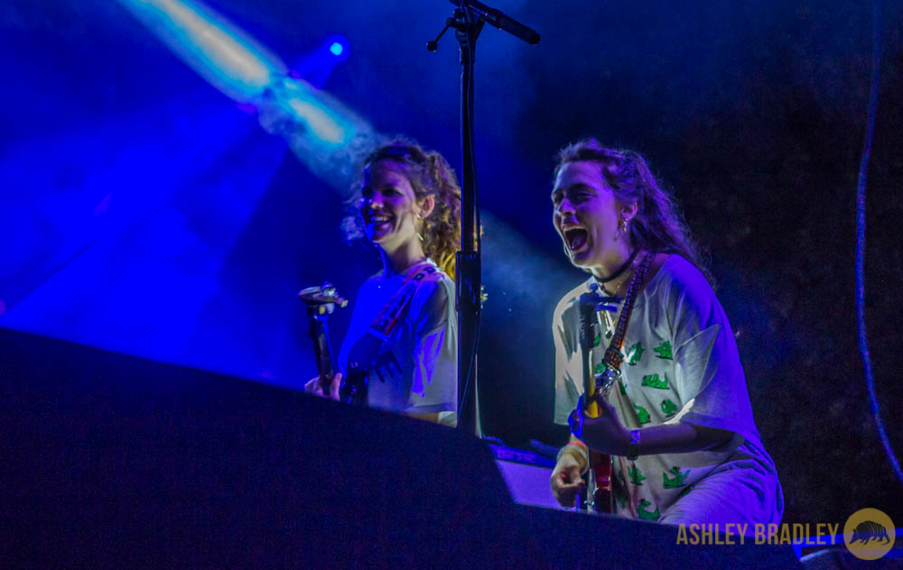 In the spirit of the renaissance I decided to bring some themed tarot cards and try to engage the artists in the backstage throne room off of the media area. I didn’t have any interviews set up and I defeated the confusing maze to find my way to the artists’ lounge. I definitely wasn’t supposed to be there. Not only did I get uneasy and insecure about my obliviousness as to the meanings of tarot cards, I felt a little weird approaching musicians on such a false prophetic level. I did catch the Spaniard girls from HINDS sitting at a long pub hall bench before I decided to scratch my project.